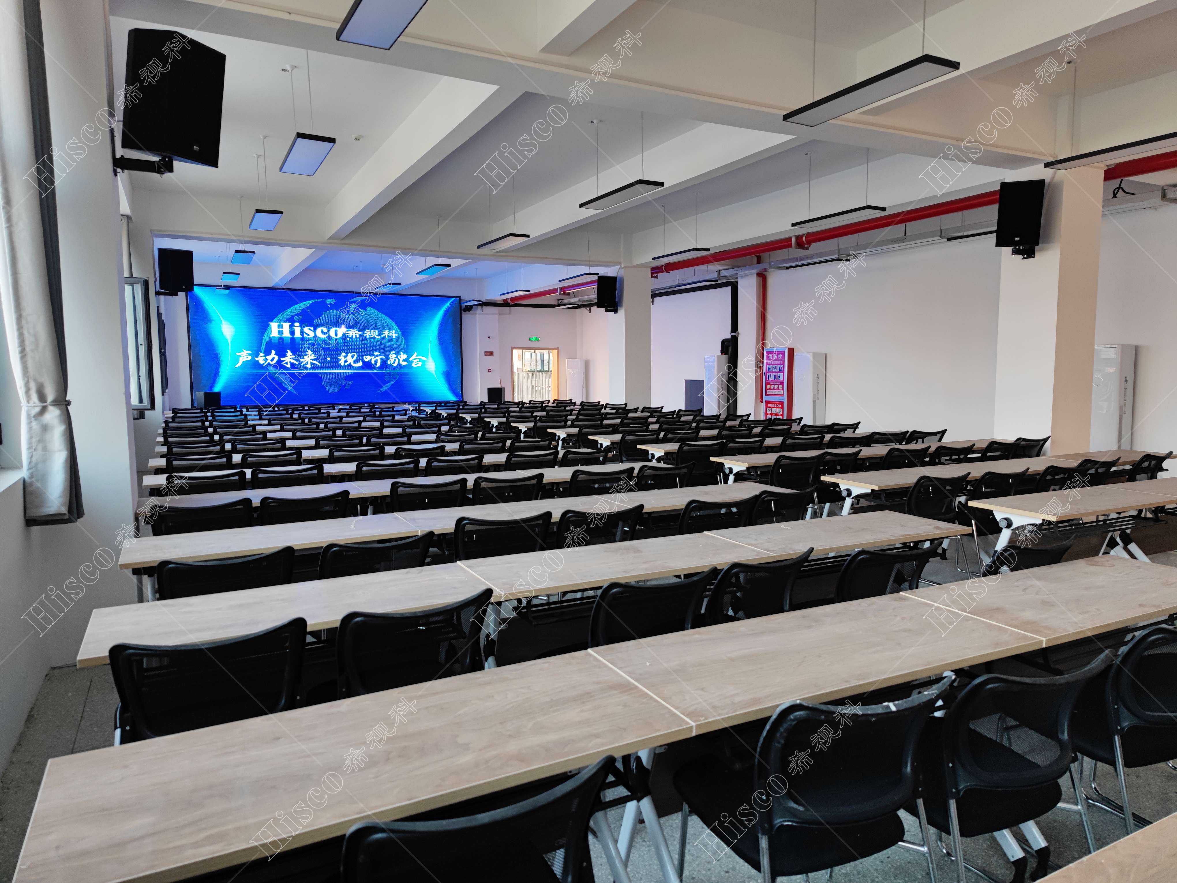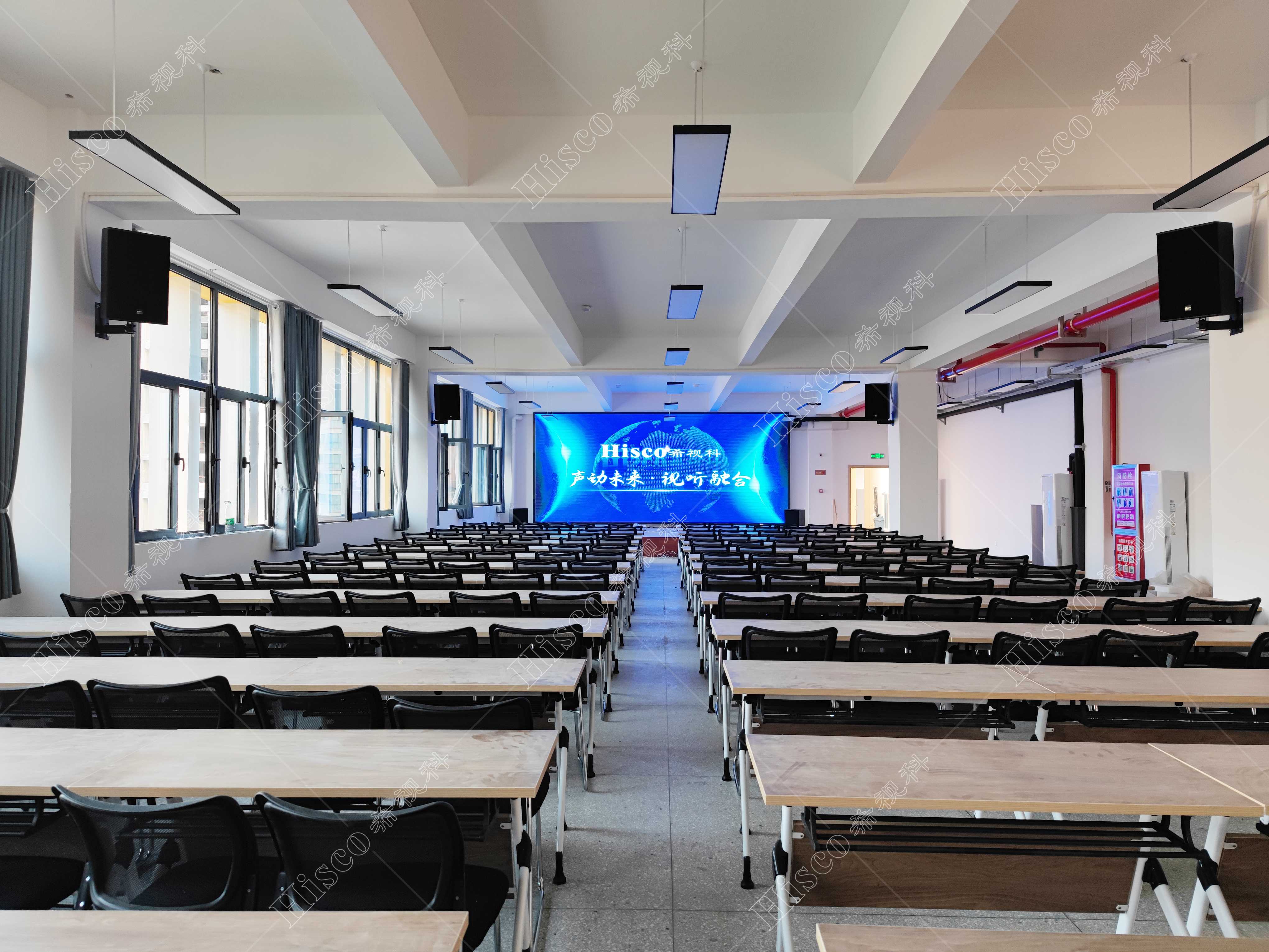 会议室内需要需要做扩声系统、会议系统、显示系统,智能化系统;满足日常开会的讨论、发言等等。综合礼堂的设计,追求语言的清晰图和饱和度,声压级级要求达到国家厅堂扩声系统一级标准。同时预留了丰富的接口,方便以后系统的扩展,实现整个系统的强大功能。同时有演出用的舞台,配置了专业的舞台灯光系统和演出扩声系统,加了超低音音箱和效果器,追求声音的饱满度和浑厚感,能够满足文艺演出,会议报告,庆典活动召开等功能。